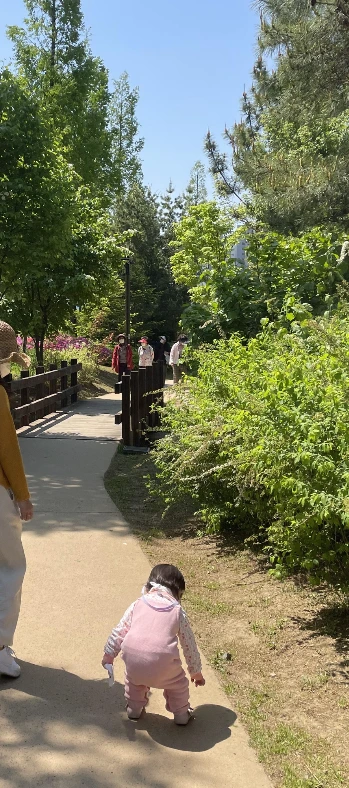 그렇게 자동차 배송을 기다리며 함께 보낸 어린이날은 참 아름다웠다. 늦은 아침을 먹고서 집 앞 공원으로 산책을 나갔는데 아장아장 걸을 나이의 이 어린이는 마치 불도저마냥 빠르게 뛰다가, 넘어지고, 일어나서 또 뛰고를 반복했다. 오래도록 상상해왔던 천천히 아장아장 걷는 아이와 그 앞이나 뒤에서 천천히 바라보며 따라 걷는 아름다운 모습은 온데 간 데 없었다.