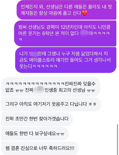 '진짜 ㄱㅌ 인생중 최고의 선생님'이라던 네 메세지.