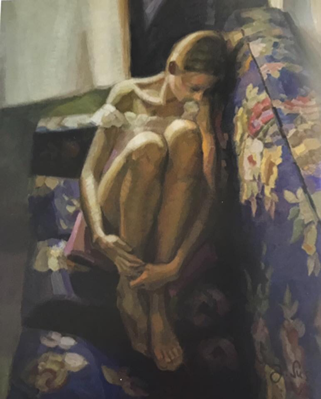질풍노도가 휘몰아치는 소파에 소녀가 앉아있다. 무릎을 기형적으로 길고 가는 팔로 모아있다.