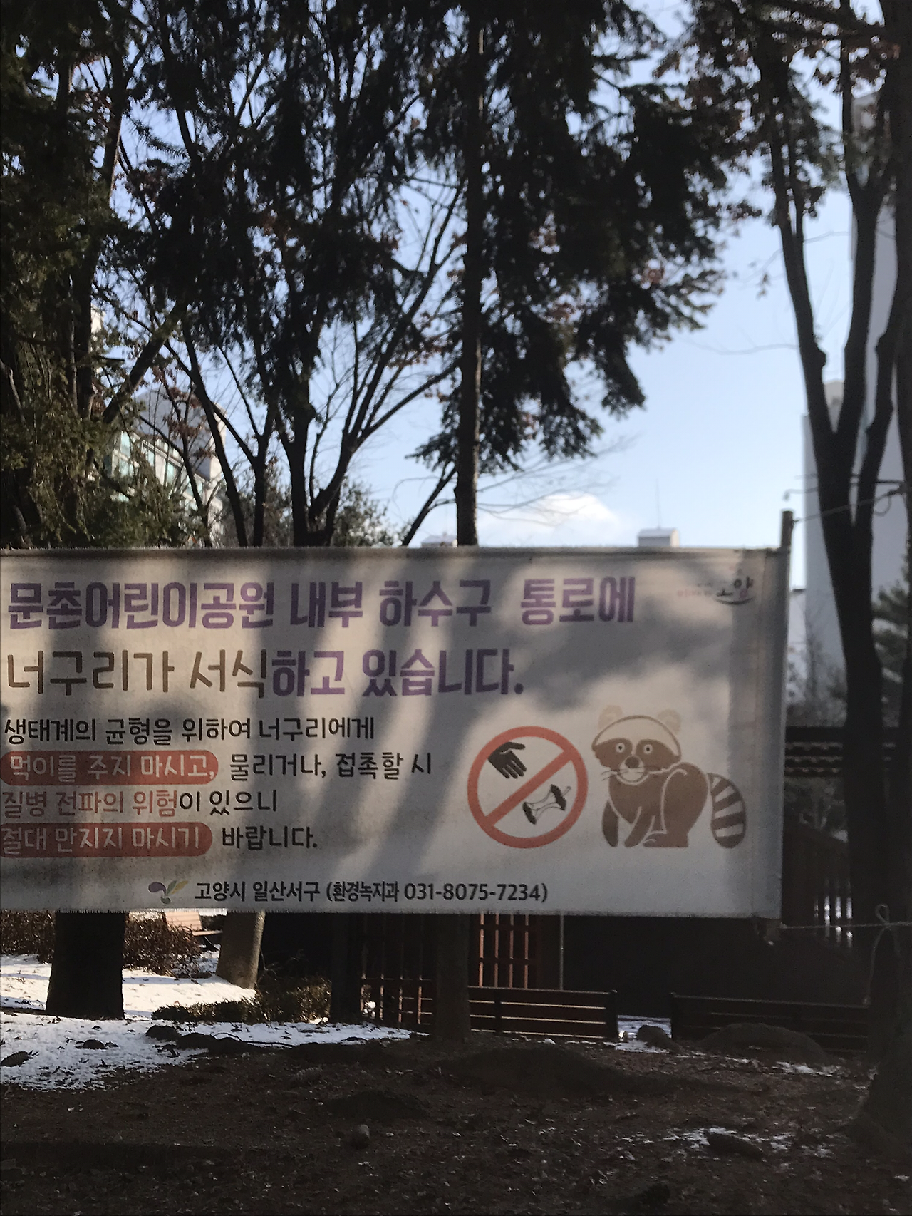 내가 사는 곳 문촌 어린이공원 현수막에도 하수구에 너구리가 산다는 알림문구가 있다. 하수구에 둥지를 튼 너구리. 너구리가 출현해도 놀라지 마세요. 지나가다 도로 밑 하수구 뒤엉킨 미로를 혼자 돌아다니는 너구리의 고독을 상상한다.