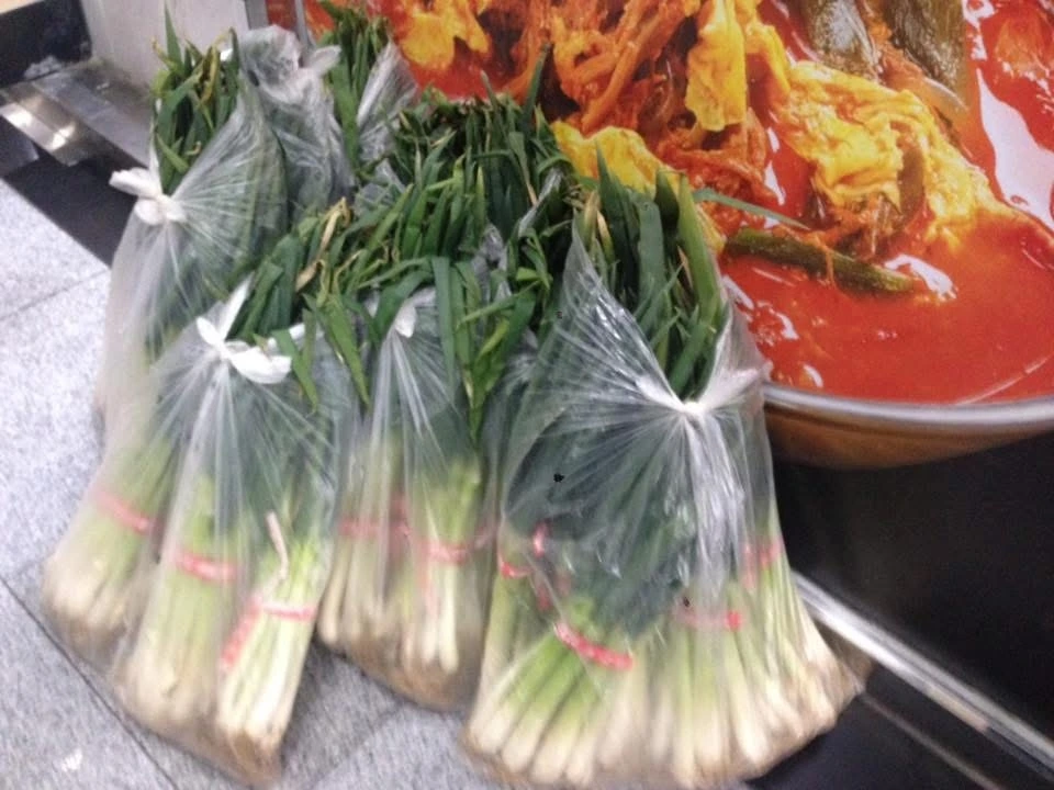 (추위에 항복해 지나가던 건물 통로에 파랗고 성성한 대파가