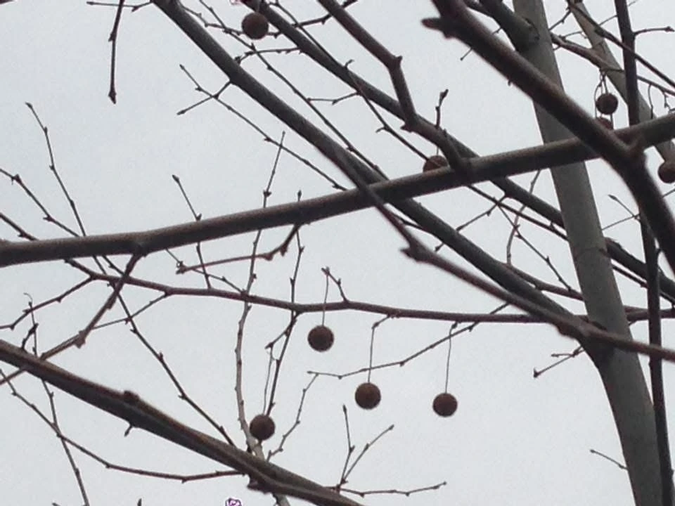 말버즘나무 방울 흔들린다. 잘린 나무. 잎 다 떨군 나무.