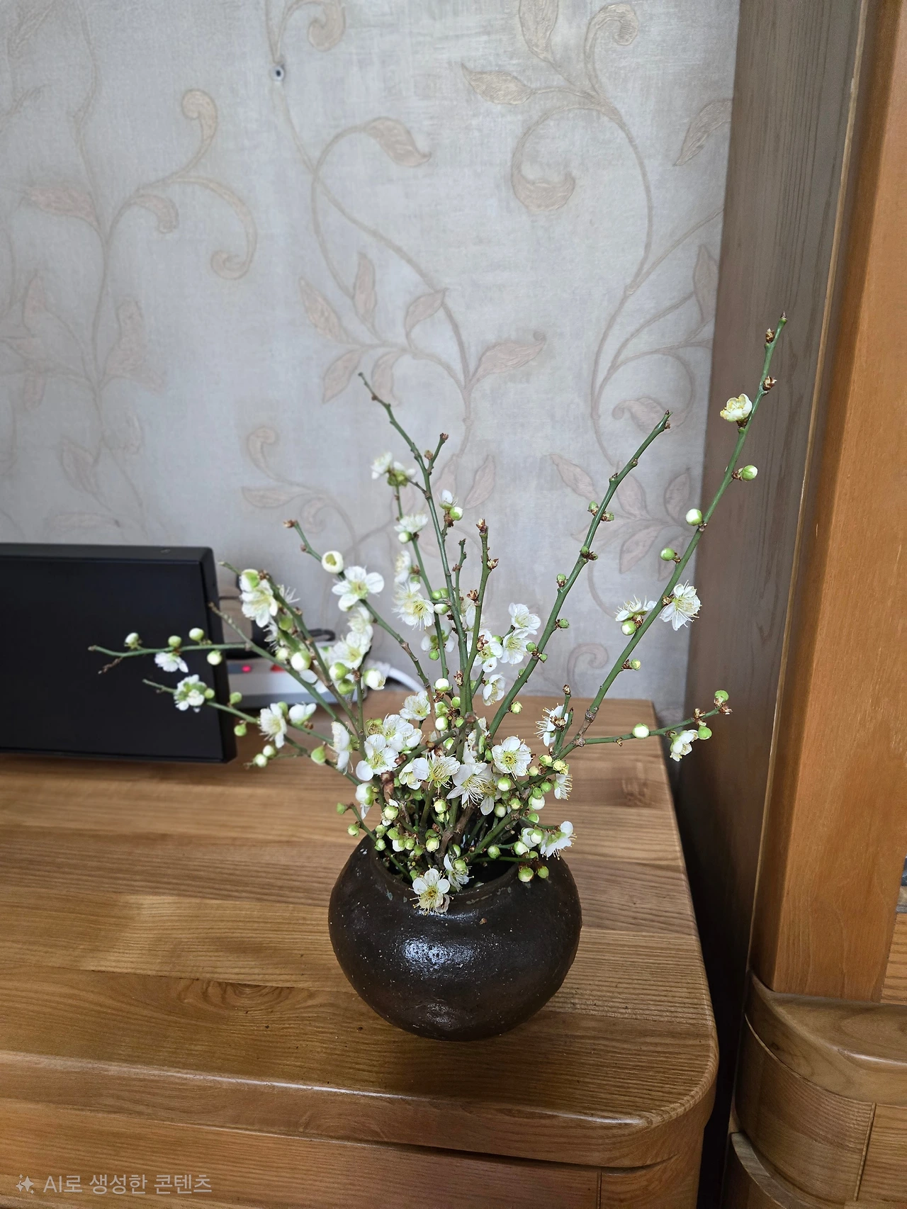 띵 또 날라온다. 옹기에 담으니 잘 어울려요. 연숙씨 직접 담은 고추장. 락앤락 한 통 줘 아껴 2년째 먹고 있다. 매화 가지 제주 무 튼실해 담았다는 석박지 데리고 왔다. 피나노 샘 연숙씨 기른 제라늄과 왔다. 띵 잘린 매화 가지가 여러 가지 데려왔다.