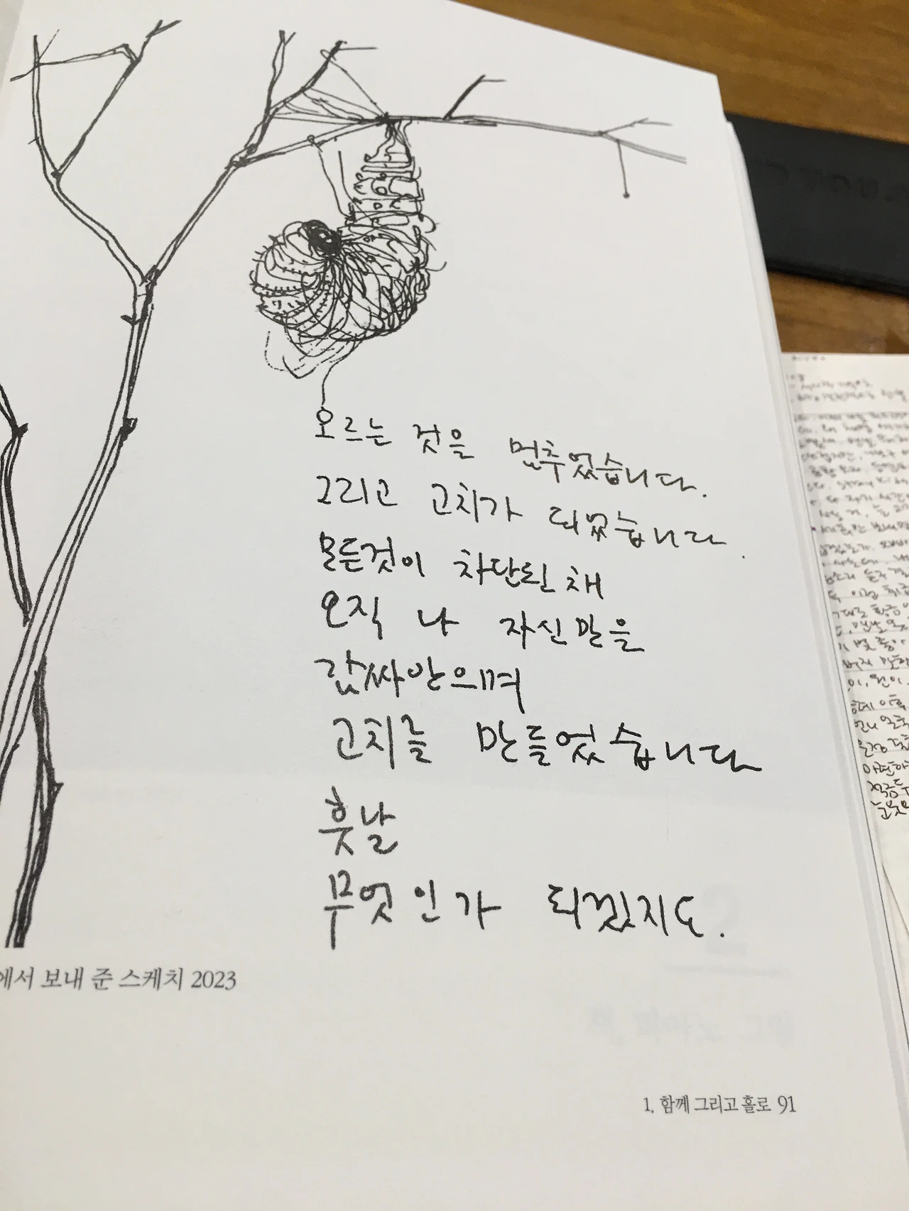 좀 쉬어갈까. 엄마, 저거 보여. 오뎅탑. 우리가 여기 산 지도 30년이 훨씬 넘었네. 엄마두 팔팔했는데. 휠체어 없으면 거동두 못하니. 수양 버들 봄처녀였는데. 새 소리 참 좋다. 들려 엄마, 들리냐구. 가지 한 자락 잡고 검은지바뀌 도롱도롱 울고. 호수 가운데 제트 분수 솟다 고꾸라지고. 미관 광장 저 탑 때문에 엄마 보고 오뎅고치 사달라고 졸랐는데. 땀 뻘뻘 한여름 팔월에 말이야. 솜사탕 말구. 아이스케끼 말구. #