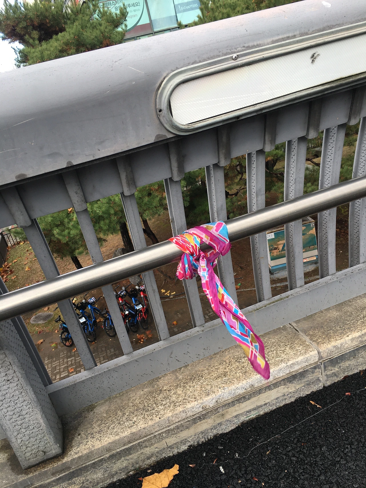 아주 멀리서 이걸 '타르쵸' 삼아 가던 길을 되짚어 온 애기엄마가 '아이쿠, 여기 있어 다행이야 반가워', 유모차 바퀴를 초고속으로 굴려와 가져가기를.