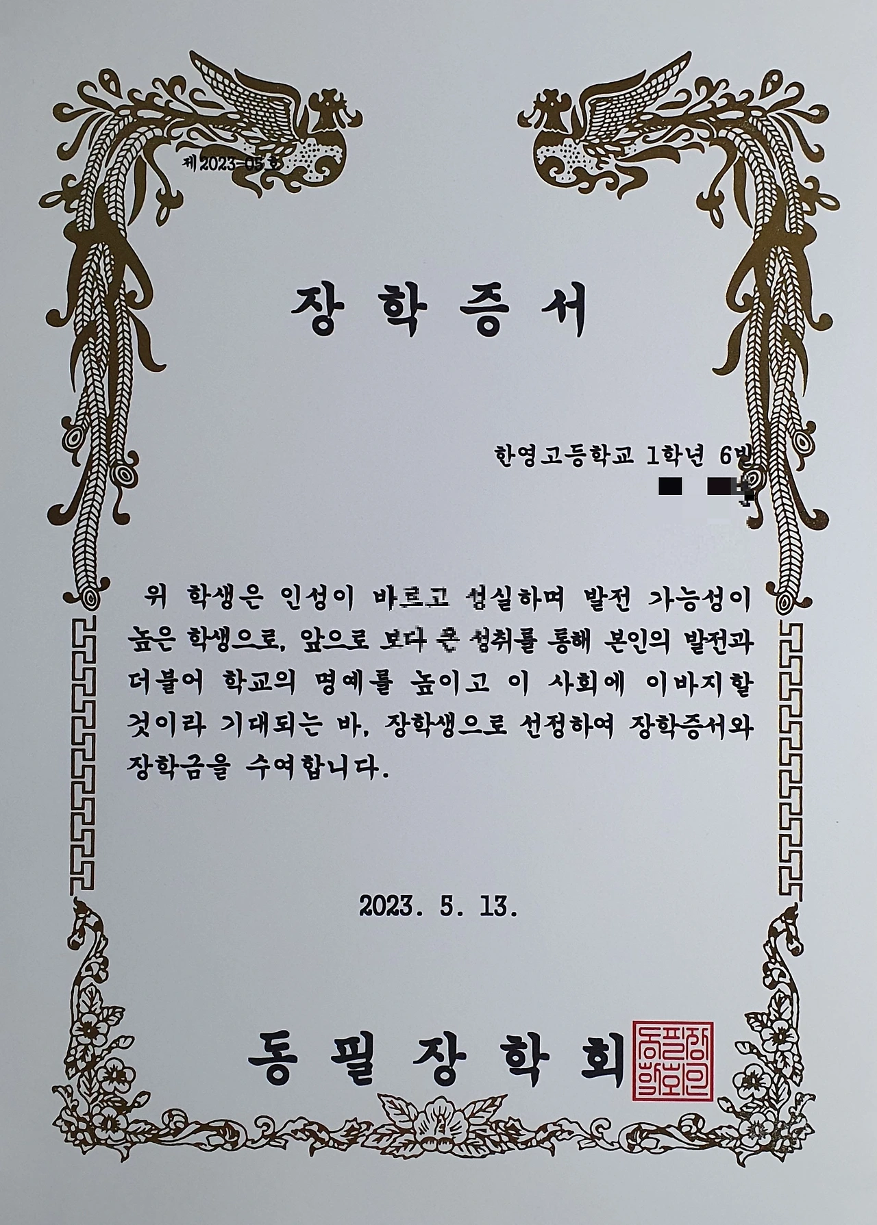 동필 장학회는 이 학교에서 34년째 교직 생활을 하는 필자(신동필 교사)와 담임으로 만난 제자들이 2015년 설립했다. 장학회의 운영은 제자들이 맡고 있으며 필자는 고문 역할을 담당하고 있다. 이날 열린 8회 장학금 수여식에선 한영고 학생 6명에게 각각 50만 원씩 전달됐다.