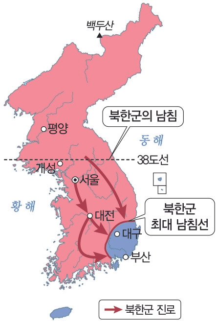 1950년 6월 25일 새벽, 북한군의 기습 공격으로 3일 만에 서울을 점령하고 2개월 후에는 낙동강 일대까지 진격했다. 6·25전쟁이 발발하자 유엔은 안전보장이사회를 소집하여 1950년 6월 25일, 6월 27일, 7월 7일 세 차례에 걸쳐 북한의 불법 남침을 규탄하고 유엔군 파병을 위한 회원국의 협조를 요청하는 결의문을 채택하였다. 이에 따라 미국을 중심으로 한 16개국이 유엔군으로 참전하였다.