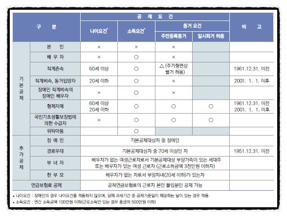 사업자의 배우자가 연간소득금액이 없거나, 연간소득금액의 합계액이 100만 원(근로소득만 있는 경우는 총급여 500만 원) 이하인 경우