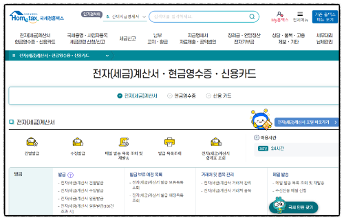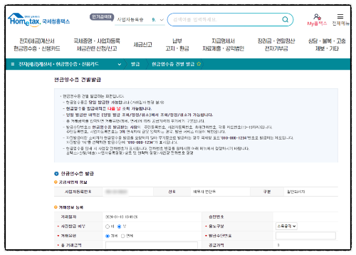 현금영수증 발행도 국세청 홈택스 사이트에서 가능하며 전자(세금)계산서 현금영수증 · 신용카드 → 발급 → 현금영수증 건별 발급 화면에서 하면 됩니다.
