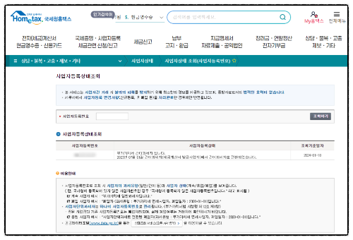 세금계산서 발급 의무 대상인 간이과세자와 거래시 해당 거래처가 세금계산서 발행이 가능한지는 홈택스에서 확인이 가능하며, 세금계산서 발행이 가능한 경우 '부가가치세 간이과세자(세금계산서 발급사업자)'로 나오게 됩니다.