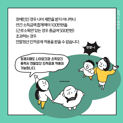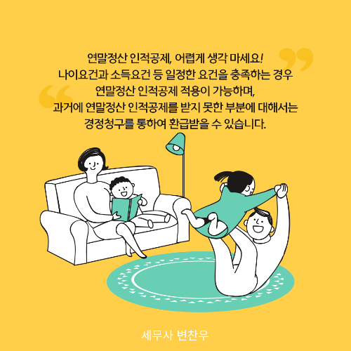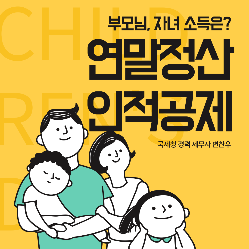 부모님과 자녀는 나이 요건과 소득 요건을 충족하는 경우 연말정산 인적공제 적용이 가능합니다. 생계를 같이하는 부양가족인 경우 받을 수 있는 연말정산 인적공제에 대하여 변찬우 세무사가 정리해 드릴게요.