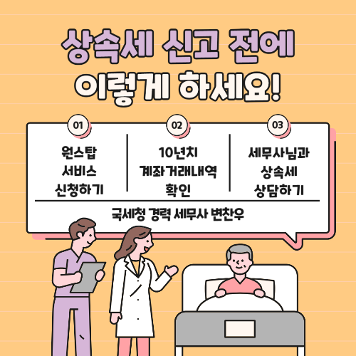 국세청 경력이 있는 상속세 전문 세무사와 첫 단추부터 시작하는 것이 중요합니다.