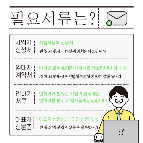 사업자등록증 발급 시 사업자등록신청서와 임대차계약서, 인허가 등이 필요한 경우 인허가증, 본인 신분증이 필요합니다. 사업자는 사업 개시일부터 20일 이내에 사업장 관할 세무서장에게 사업자등록을 신청하여야 하며, 신규로 사업을 시작하는 경우 사업 개시일 이전이라도 사업자등록증 발급이 가능합니다. 관할 세무서가 아닌 다른 세무서에서도 사업자등록증 신청이 가능하며 사업자등록증 신고일부터 2일 이내에 발급하게 됩니다.