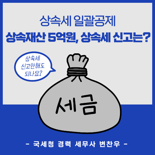 상속을 받을 때 상속재산이 5억원 이하인 경우에는 상속세 일괄공제를 적용하면 상속세 납부세액이 나오지 않습니다. 상속재산이 5억원 이하인 경우에는 상속세를 신고할 필요가 없다고 생각하는데 어떠한 경우에 상속세를 신고 안 해도 되는지 변찬우 세무사가 알려드릴게요.