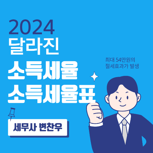 2023년 소득세법 개정에 따라 2024년에 신고하는 소득세율이 달라졌습니다. 소득세율이 적용되는 과세표준 구간이 개정되어 소득세 계산법이 달라지게 되었는데 달라진 소득세율표와 2024년 소득세율에 대하여 변찬우 세무사가 설명드릴게요.