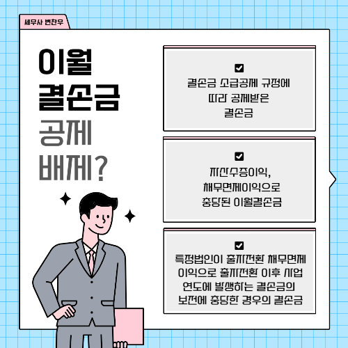 다만 법인세(소득세)의 과세표준과 세액을 추계하는 경우에는 이월결손금을 공제받을 수 없으며, 추계로 공제되지 않은 이월결손금은 그 후의 사업연도에 공제받을 수 있습니다.
