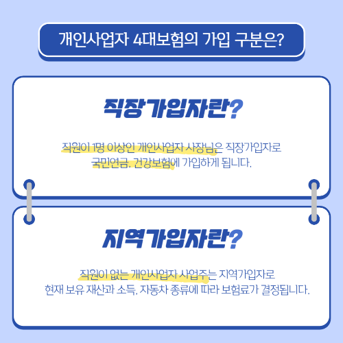 개인사업자를 운영하는 사업주들이라면 피할 수 없는 것이 바로 종합소득세와 4대보험인데요. 4대보험은 4대보험 가입한 직원의 유무에 따라 사업자들이 지역가입자 또는 직장가입자로 보험료가 부과됩니다. 개인사업자 종합소득세와 4대보험에 대하여 변찬우 세무사가 정리해드릴게요.