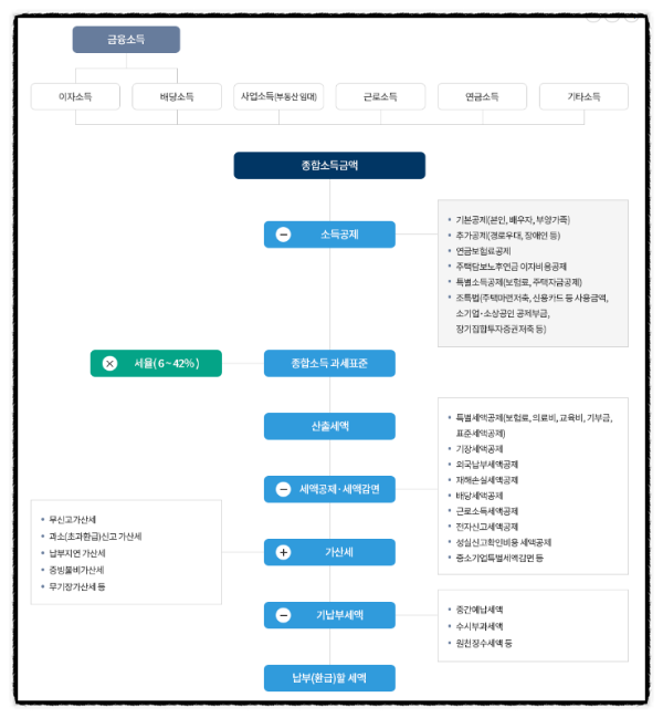 : 근로소득, 사업소득, 이자소득, 배당소득, 연금소득, 기타소득