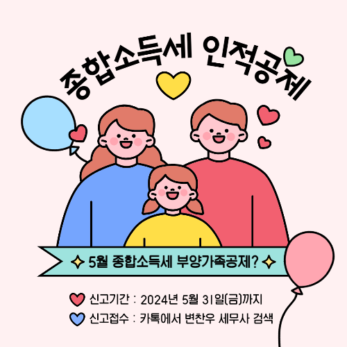 이상으로 종합소득세 인적공제, 부양가족 공제에 대하여 알아보았습니다.