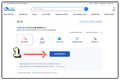 홈택스 사이트에 접속하여 공동인증서(간편인증서)로 로그인합니다.