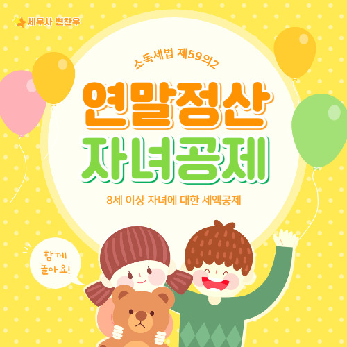 8세 이상의 자녀(손자녀 포함)가 있는 경우 연말정산 자녀공제를 적용받을 수 있습니다. 연말정산 자녀공제는 개인사업자의 종합소득세 신고 시에도 세액공제 적용이 가능한데, 올해부터 소득세법이 개정되어 연말정산 자녀공제액이 확대되었습니다. 달라진 연말정산 자녀공제 금액과 나이에 대해서 알려드릴게요.