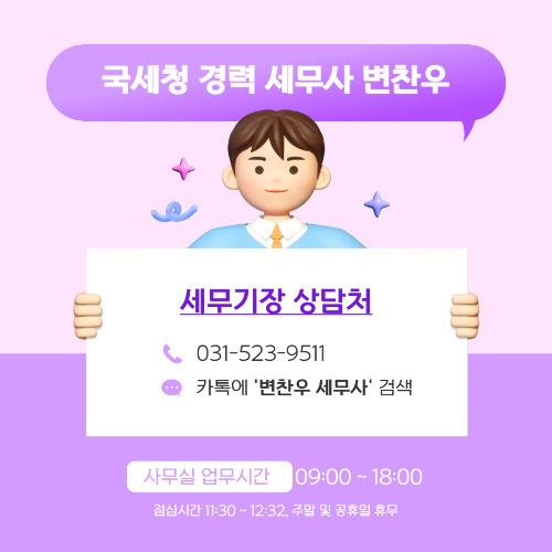 안녕하세요. 국세청 경력 세무사 변찬우입니다.