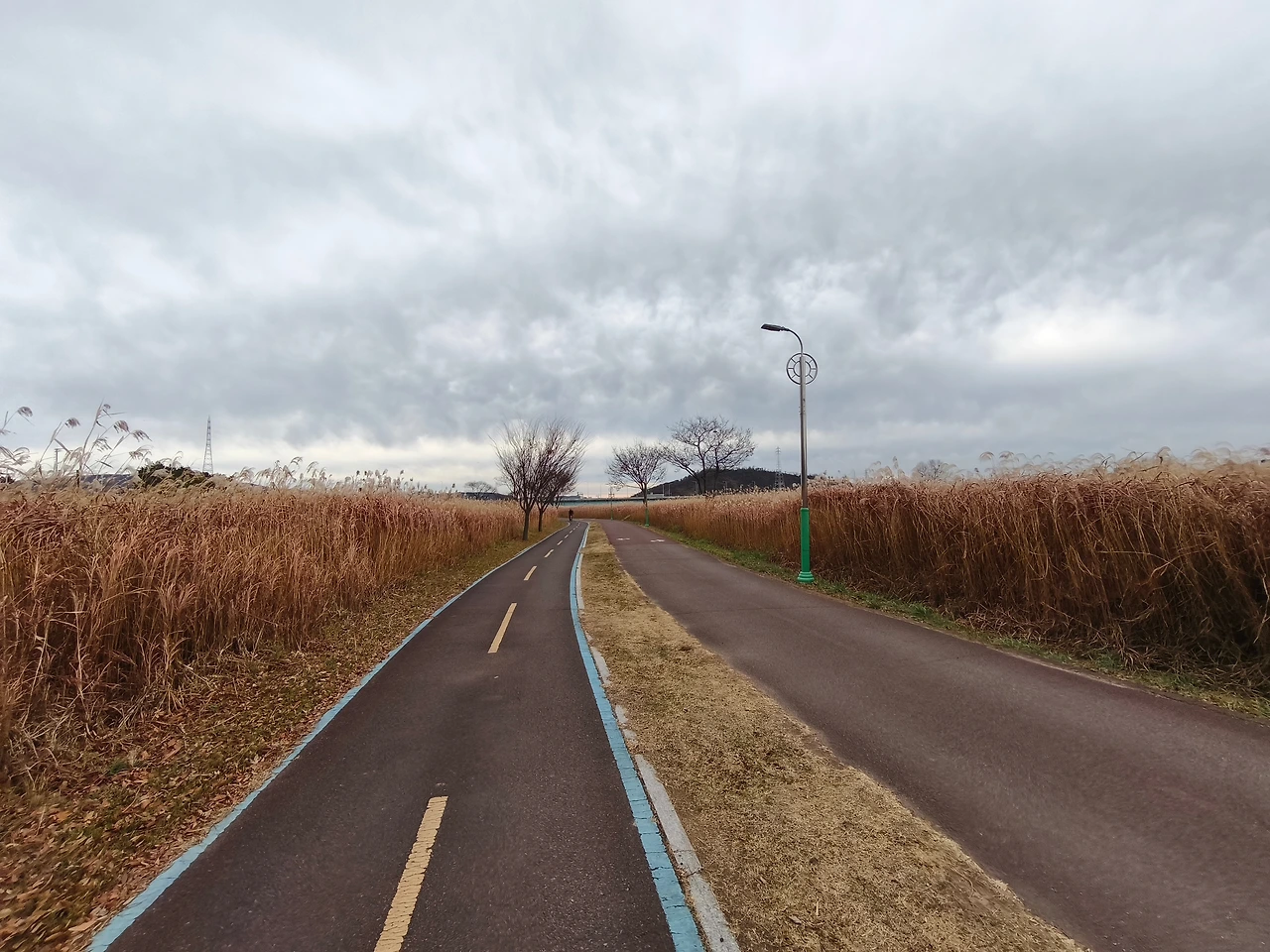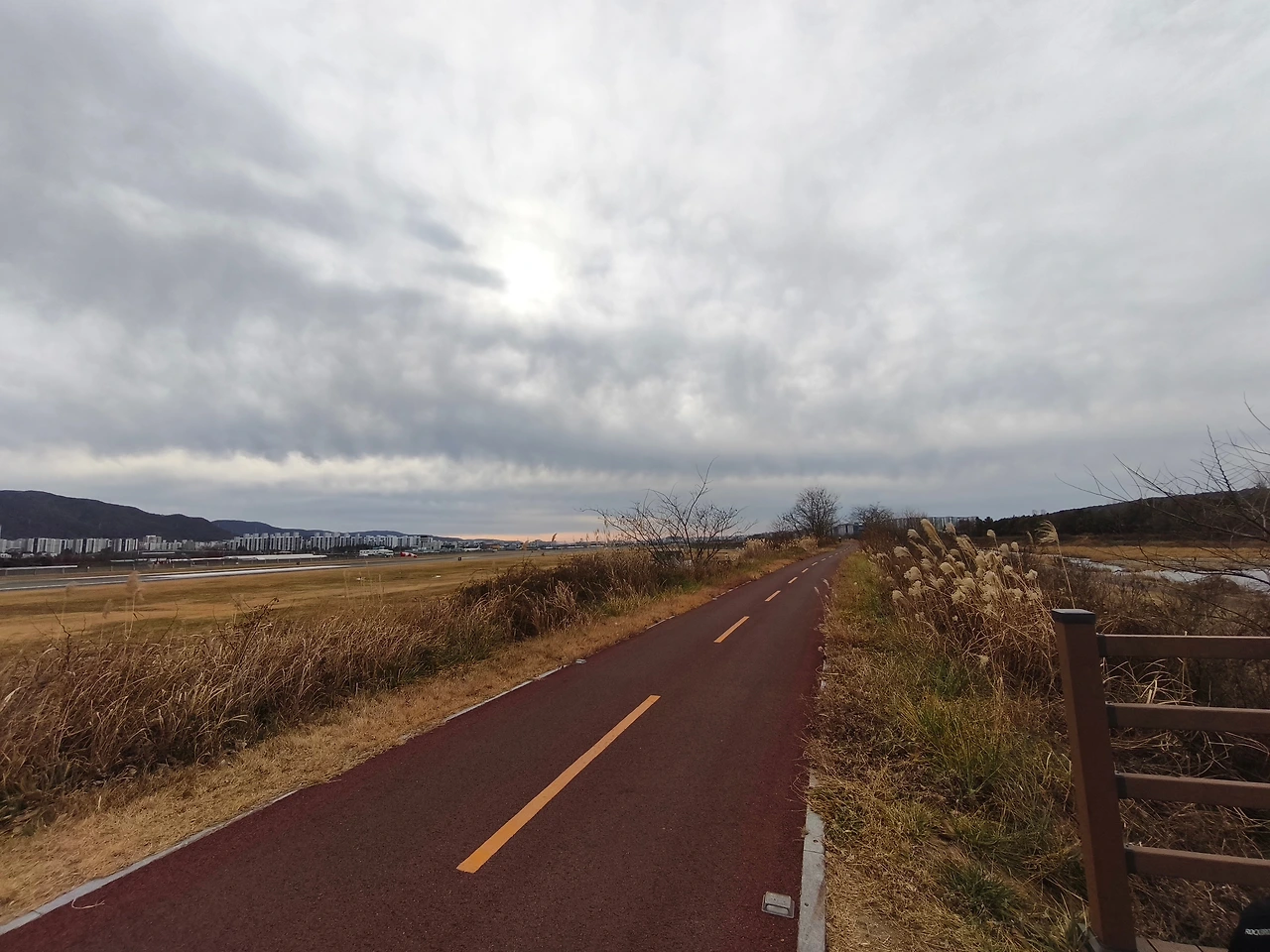 자전거도로에 오자 자전거를 타는 사람이 많이 보였다. 좌측으로는 공항이 있어 비행기가 뜨곤 했다. 동천은 곧 태화강과 만났고, 갈대가 멋있는 태화강변을 따라갔다.