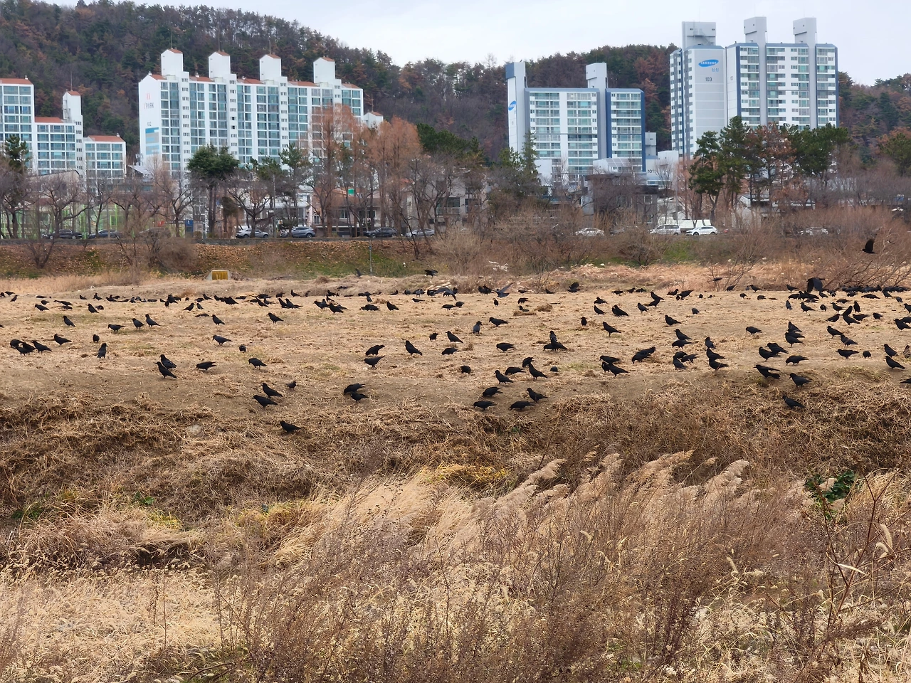 배도 채우고 몸도 충전하니 다시 속도를 내어 갈 수 있었다. 태화강변을 따라가는 자전거도로는 잘 되어 있었고 경치가 좋았다. 까마귀가 떼로 살고 있는 풍경도 신기했다.