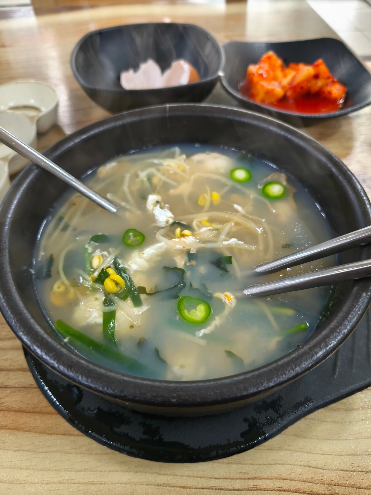 굴국밥을 시켰고, 양이 적은 것 같아서 4000원짜리 추가 돈가스도 시켰다. 역시나 칼로리 소모가 많기 때문에 배가 고팠다.