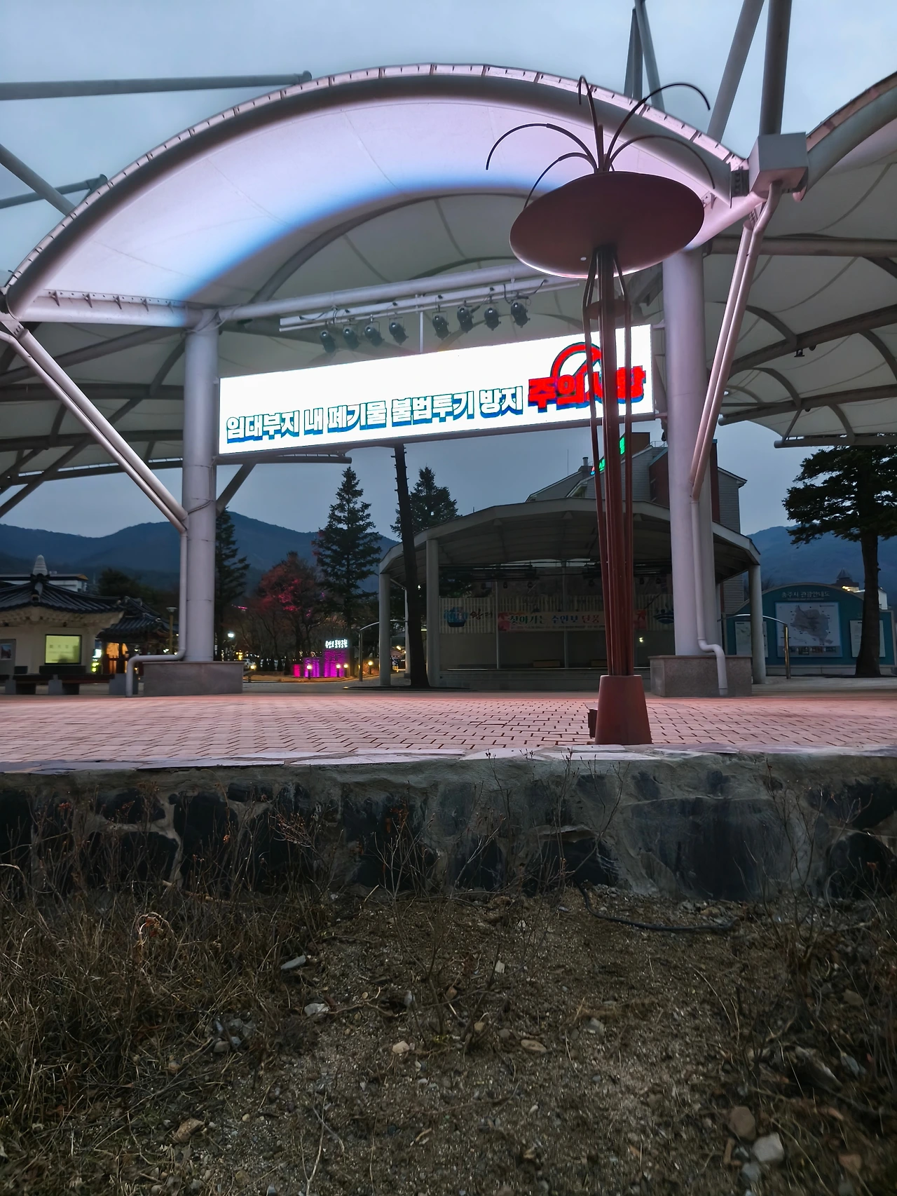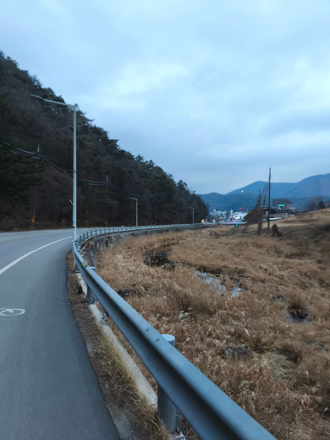 별의별 생각을 다 하며 걸음을 이어나갔고, 10km, 5km 정도로 거리가 줄자 날이 어두워졌다. 그래도 플래시를 켤 정도는 아니었기에 걸음을 재촉했고, 3km를 남겨두고 양말 안에서 물집이 터지는 느낌이 들었다. 물집이 있을 때는 디딜 때마다 지지직하는 통증 때문에 잘 못 걸었다면, 물집이 터지고 나서는 그 통증이 덜해지면서 한결 수월해졌고, 나는 어둡기 전에 수안보애 도착했다.