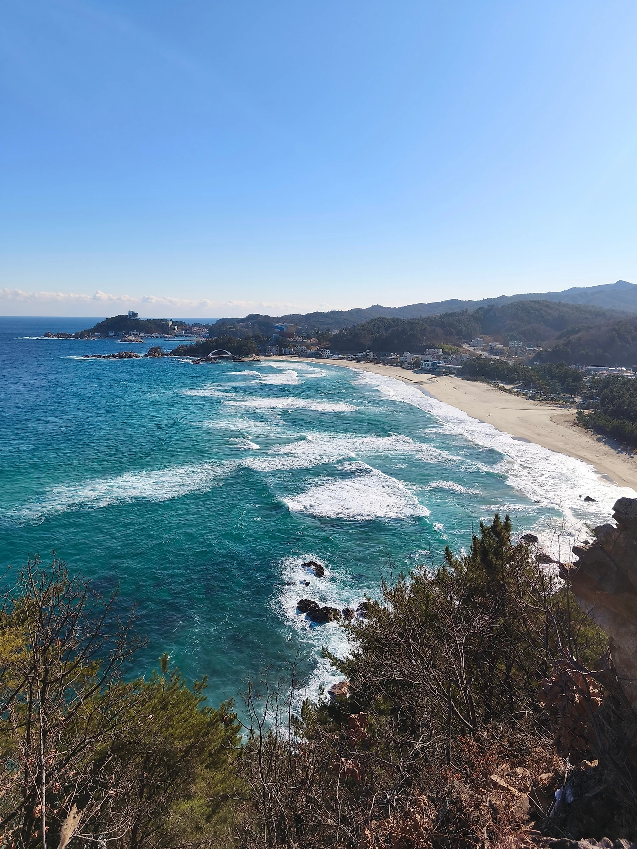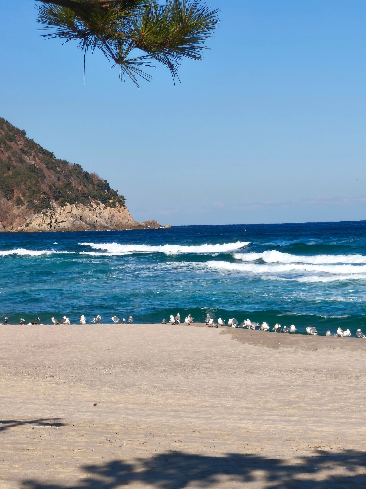 추워서 그런지 바다의 푸른 색깔이 정말 진하고 예뻤다. 진한 파랑부터 에메랄드색까지 물감으로 겹겹이 칠해놓은 것처럼 황홀했다.