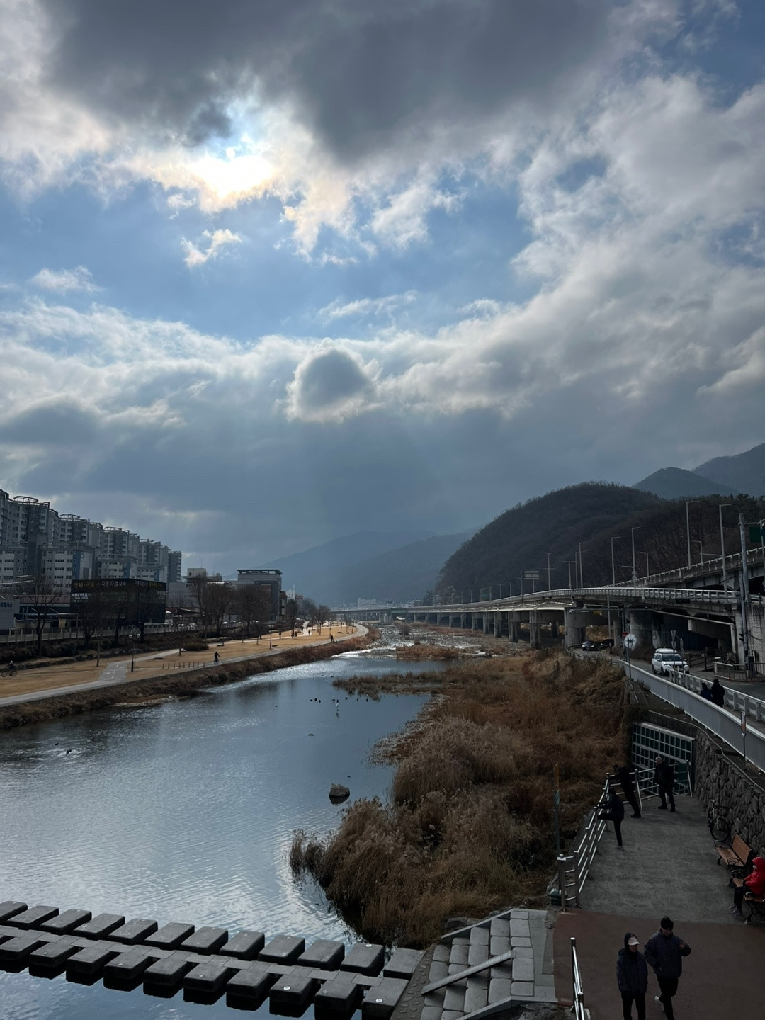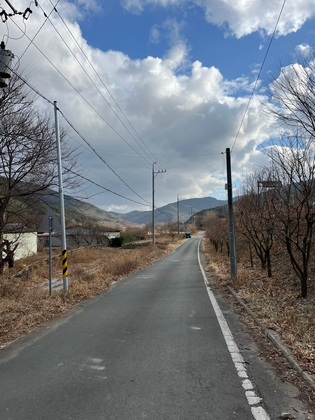 갓 찐 찐빵을 먹으니 맛있었다. 팥소도 안 달고 고소했다. 역시 1개가 딱 적당했다. 가다가 하나로마트에 들러 우유와 음료수도 사 먹고 길을 계속 걸었다. 중간중간에 자전거를 타는 사람들, 오토바이를 타는 사람들이 보였다. 하지만 트레킹을 하는 사람은 나 밖에 없었다. 그리고 인도가 잘 없었는데 자전거 도로가 있으면 자전거 도로로 가면 좋았지만 없는 경우에는 차들이 다니는 길가에 붙어서 가야 했다.