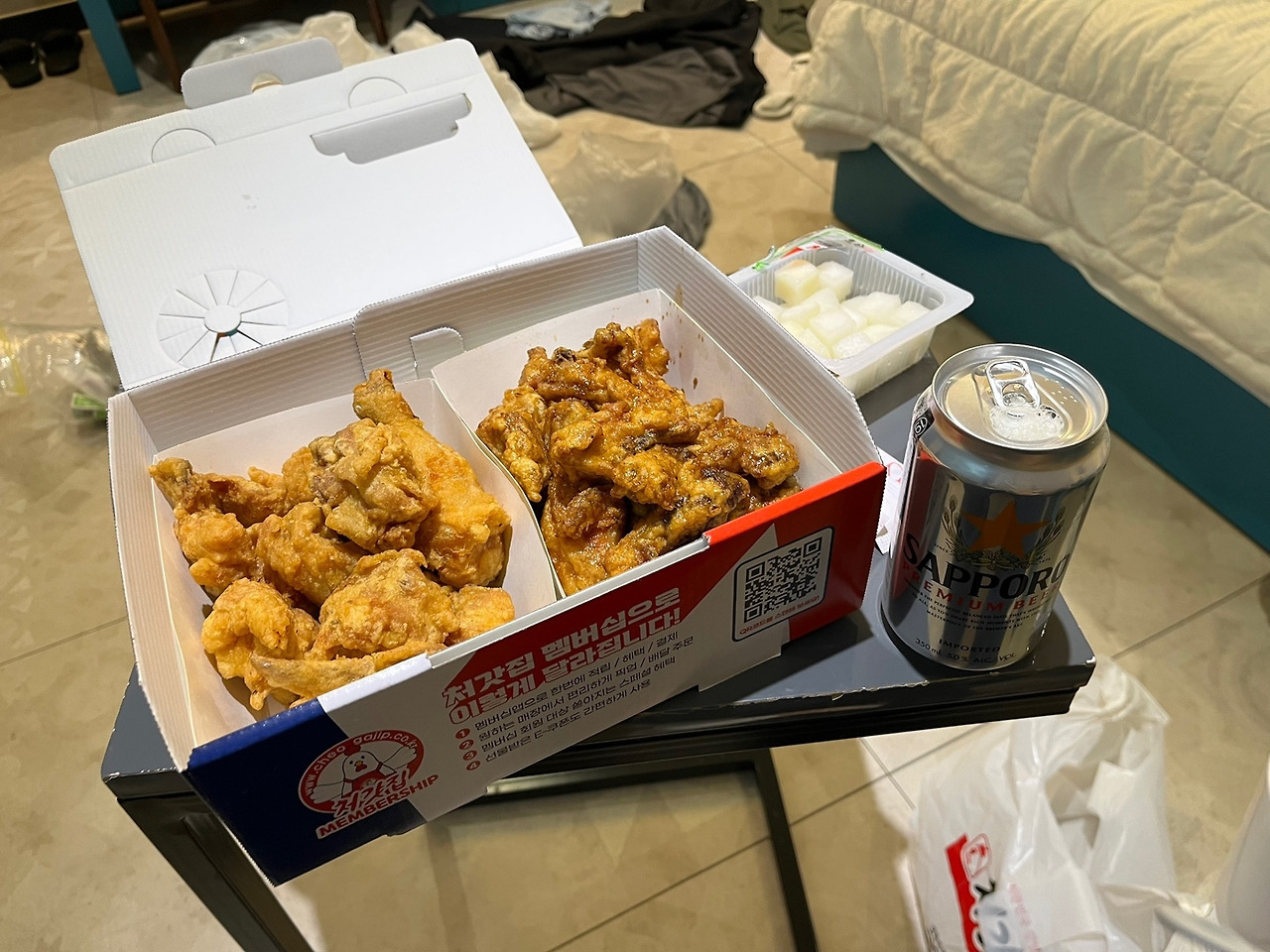 나는 절뚝이며 느린 걸음으로 최대한 걸어갔고, 삼랑진에서는 버스도 택시도 잘 없다는 것을 알게 되었다. 나는 아픈 다리를 끌고 가면서 치킨과 맥주가 계속 생각이 났고, 삼랑진역 이후로는 더 이상 다리가 움직이지 않았기에 치킨을 포장해서 택시를 잡아야 하나, 아니면 맥주만 편의점에서 사서 모텔에서 배달을 시켜야 하나를 놓고 고민했다. 결국 삼랑진역 근처 편의점에서 맥주를 사고, 역 앞에서 기다리니 택시가 한 대 왔다(택시 어플로는 잡히지도 않았다). 아저씨는 나를 보더니 8천 원을 불렀다. 아마도 갔다가 다시 오는 비용까지 책정한 것 같았다. 어플로는 5-6천 원이었기 때문이었다. 나는 어쩔 수 없이 알겠다고 하고 모텔까지 갔다. 고장 난 다리로 택시를 타지 않고서는 불가능했기 때문이었다. 3일 째의 모텔은 첫째 날과 둘째 날 중간쯤 되는 시설이었다. 보통 정도였던 것이다. 나는 배달 어플을 켜서 봤는데 전부 거리가 멀었다. 어플에서는 배달이 된다고 적혀 있고, 배달비도 얼마 적혀 있지 않았는데 믿을 수가 없는 정보였다. 그래서 삼랑진역 근처의 치킨집에 직접 전화를 걸어서 배달이 가능한지 물어서 전화로 주문을 했다. 전화로 주문을 하고 직접 카드로 결제하는 건 옛날에 하던 방식이었는데 시골에서는 이 방식으로 하고 있다는 것이 신기하기도 하였다. 어쨌든 나는 그날 아픈 다리를 보상이라도 하듯 치킨과 맥주를 마구 먹고 휴식을 취하였다.