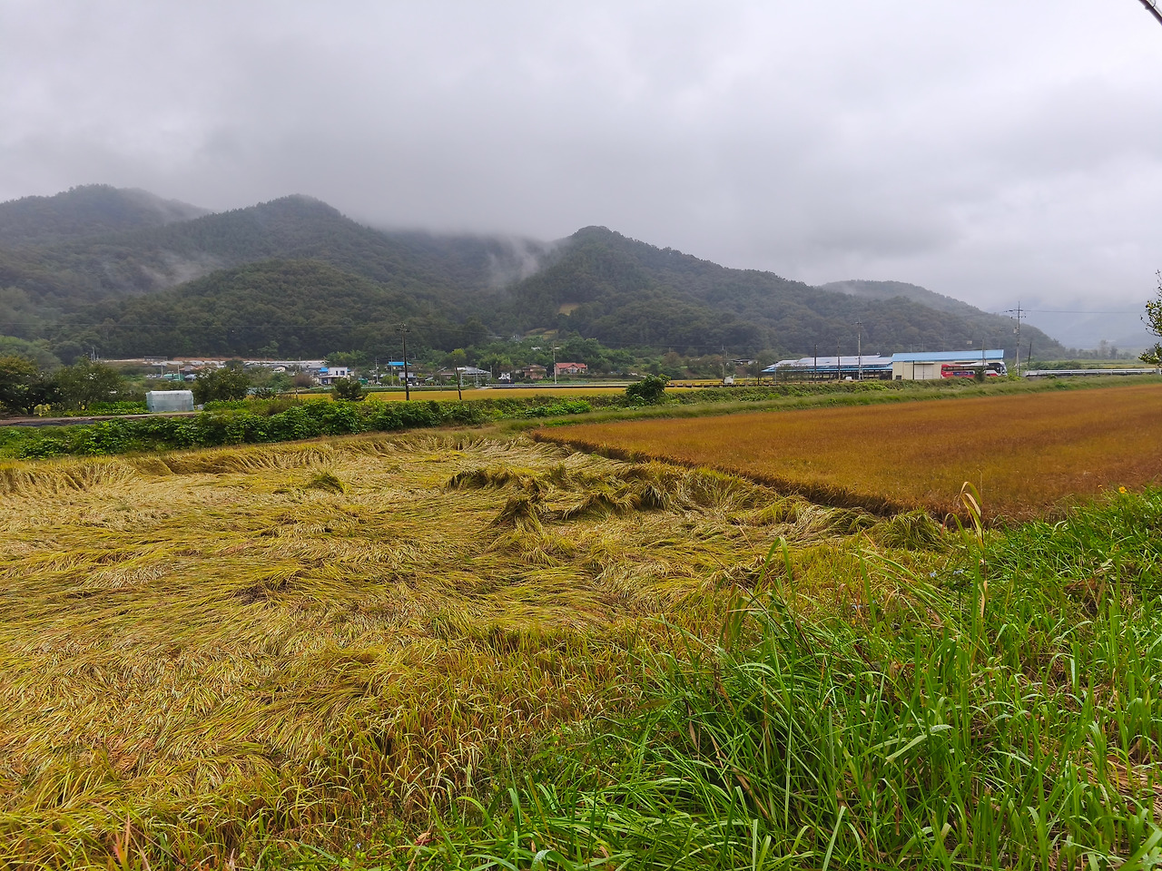 석류가 발갛게 익고 있었고, 배들도 주렁주렁 달려 있었다. 비바람에 쓰러진 논들도 제법 많았다. 김수영의 시에서 풀은 누웠다가도 바람보다 더 빨리 일어난다고 하였는데, 벼들은 일어나지 못하고 있었다.