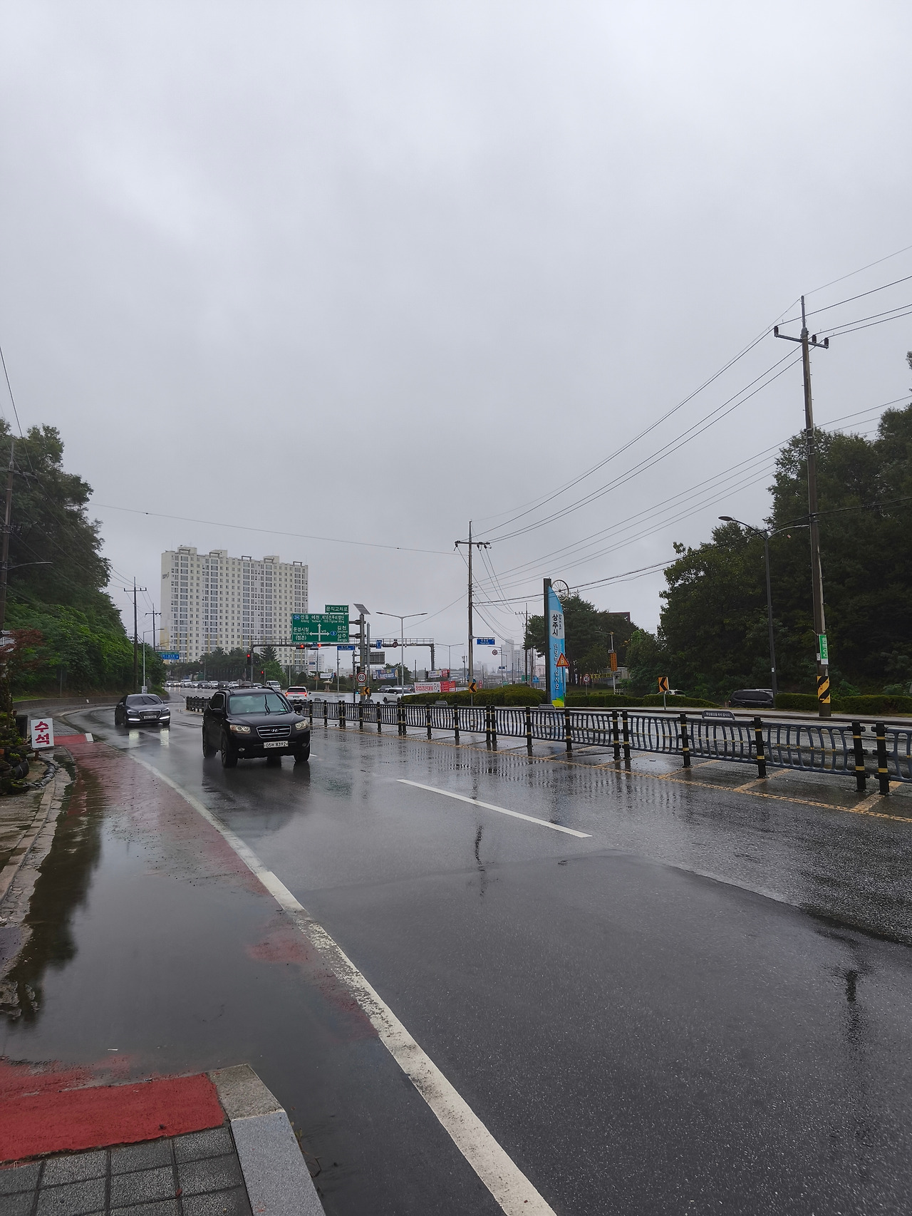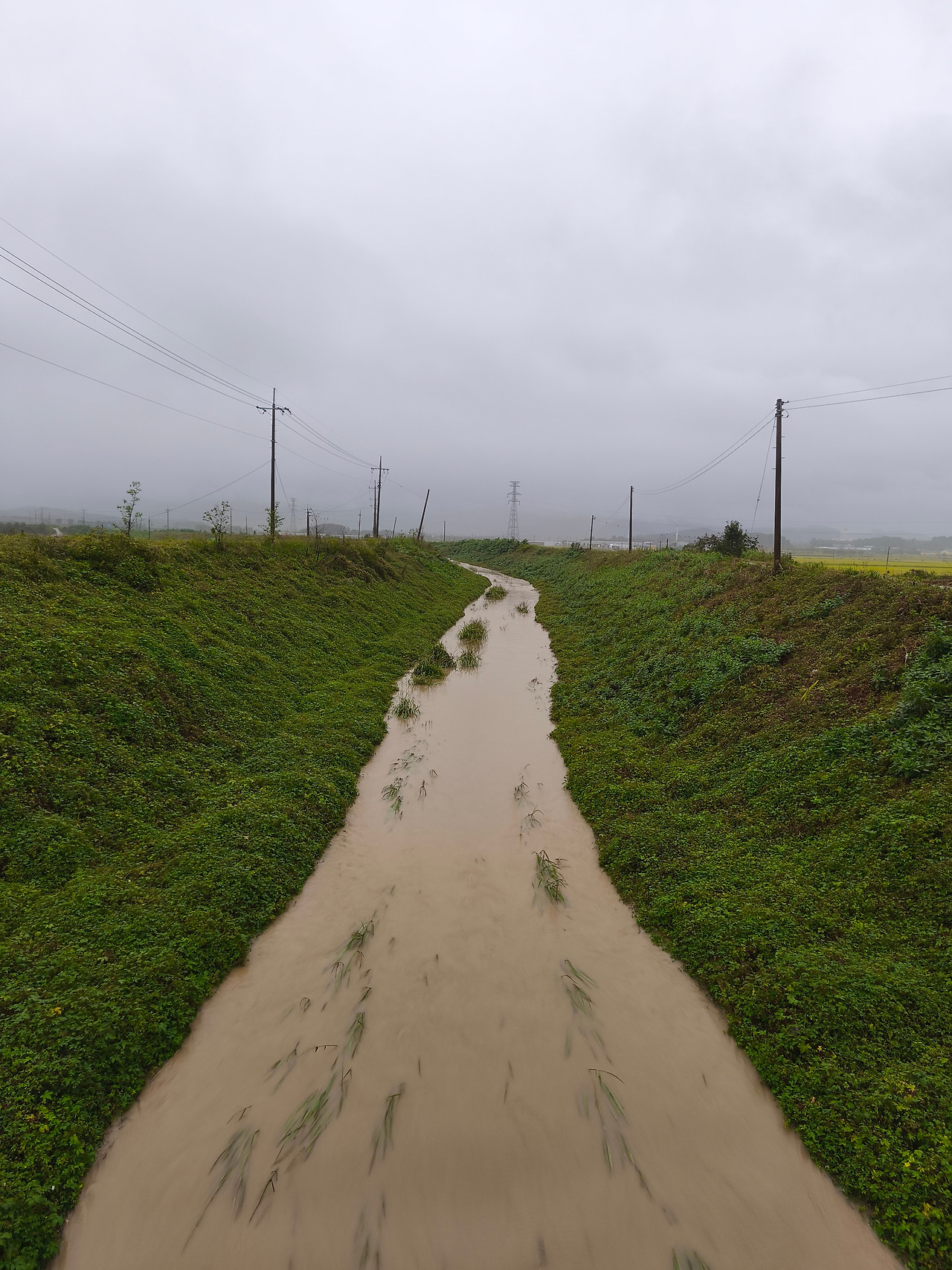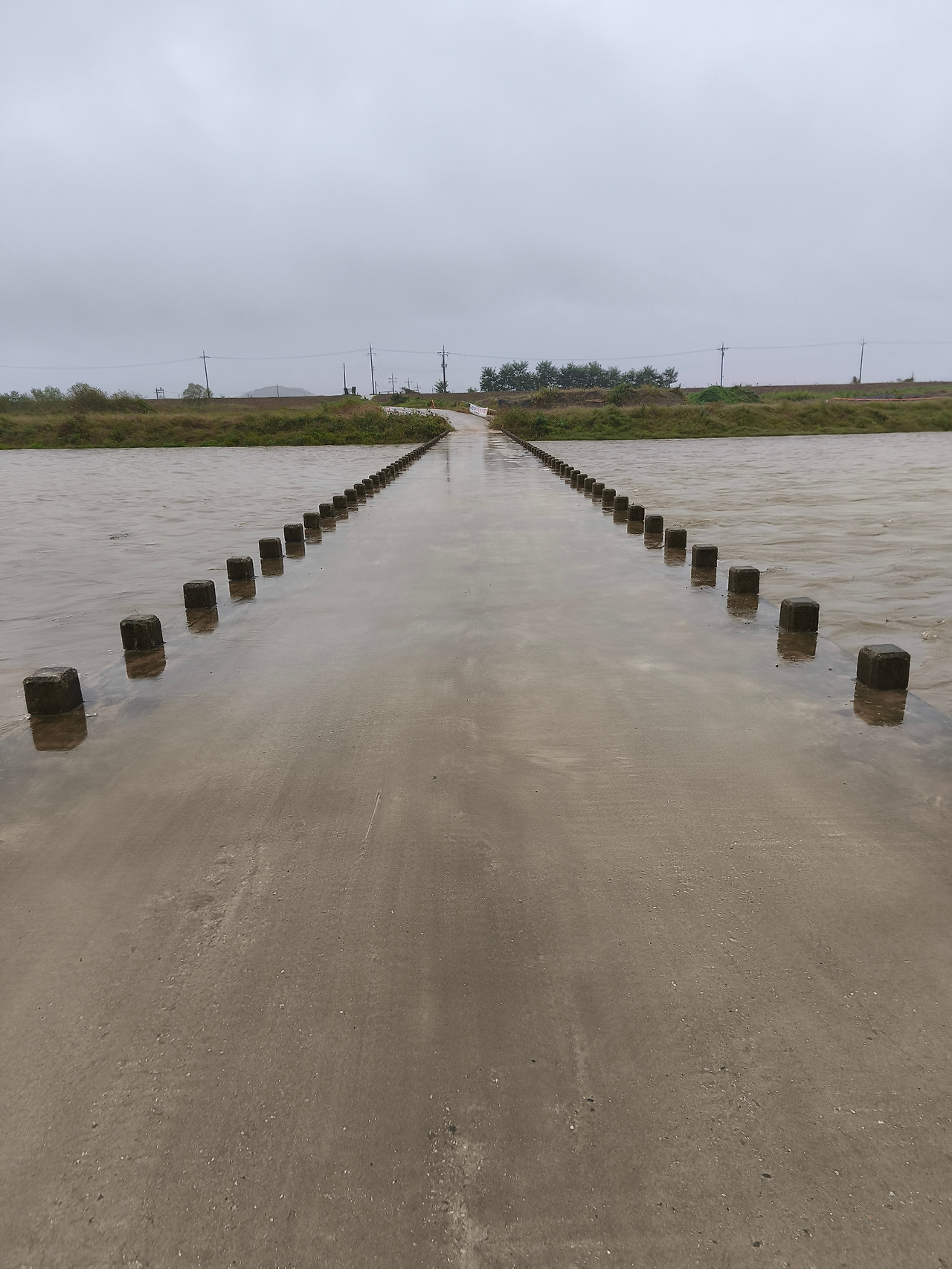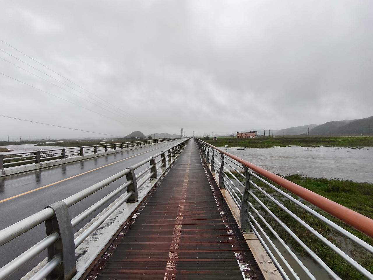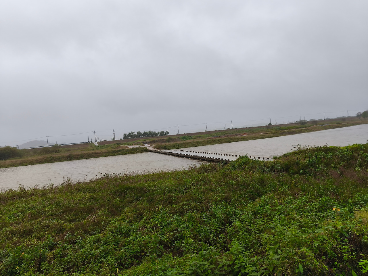 어제부터 계속 내린 비에 강물이 불어나 있었고, 어떤 구간은 하마터면 지나지 못할 뻔하였다. 물이 거의 다리까지 차올랐기 때문이다.