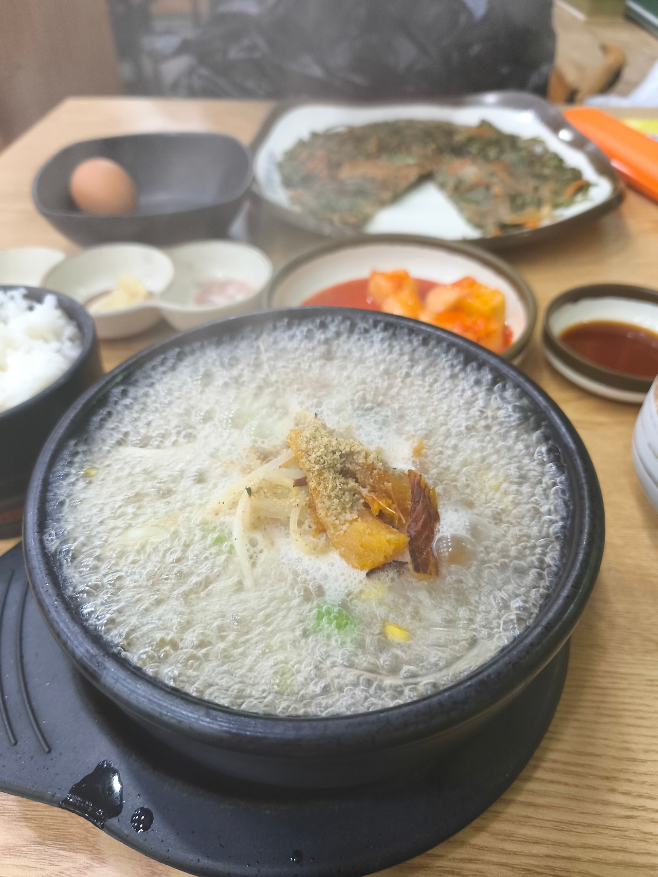 배가 매우 고팠기 때문에 콩나물국밥집에 들어가 황태해장국과 부추전, 모주를 시켜 배가 부르게 먹었다.