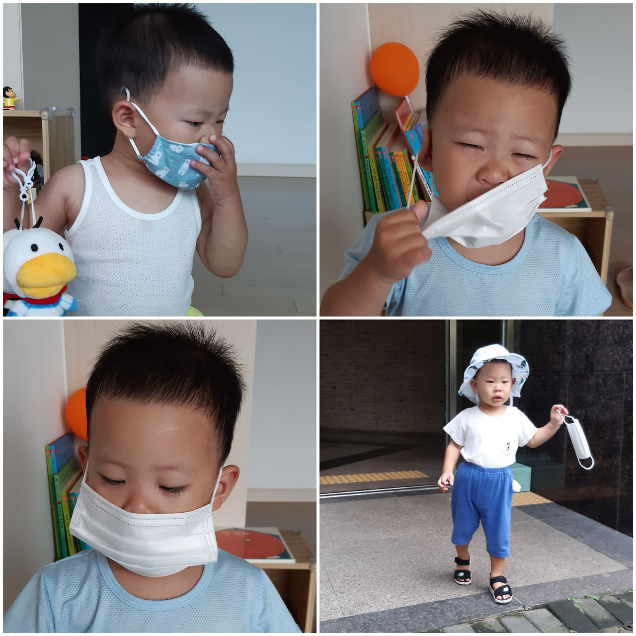 그래도 어쨌거나 아이는 곧 24개월이 될 예정이기에 마스크 쓰기 연습은 계속되어야 한다. 울고 떼쓰고 가 반복되겠지만 눈 꼭 감고 하련다.