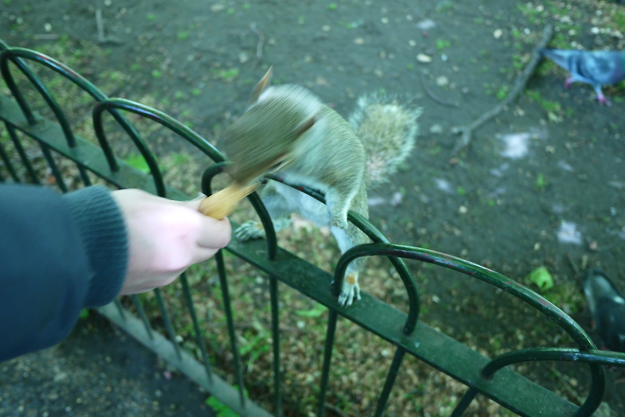 이미 많은 사람들이 알고있는 사실 이지만 대부분의 돗자리없이는 공원에 앉지 않는 한국과 달리 유럽에서는 잔디밭에 사람들이 앉거나 눕는 것은 대수롭지 않다. 물론 공원안에 선베드같은 의자가 있지만 그것은 유료이기 때문에 대부분은 그냥 잔디밭에 앉아 여유로운 대화를 즐긴다. 색다른 풍경을 구경하며 걷다보니 정말로 색다른 것과 마주쳤다. 다람쥐였다. 공원에 다람쥐가 있는 것은 처음보는 것이었다. 게다가 공원에 살면서 사람들손이 타는 것이 익숙한지 먹이를 얻기위해 사람들의 손을 피하지도 않고 제법 애교도 부린다.