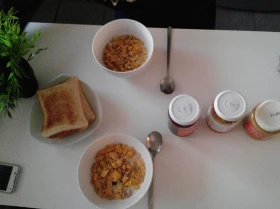 아침식사는 시리얼과 토스트. 제대로된 서양식 아침 식사다. 원래 우리가 아침식사를 가리는 편은 아닌지라 양껏 푸짐하게 먹었다. 그 맛이 얼마나 좋은지 노릇하게 구어진 식빵에 누텔라잼을 발라 한사람당 두어장은 먹어치웠던 것 같다.