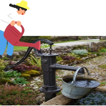 지하에서 물을 퍼내는 기계인 펌프의 물을 잘 나오게 하기 위해서는 신기하게도 펌프에 조금의 물을 넣어주는 일이 필요합니다.