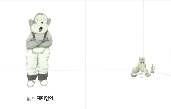 '다 재미없어' 하는 침팬지. 인물의 색감이 어떤가요?