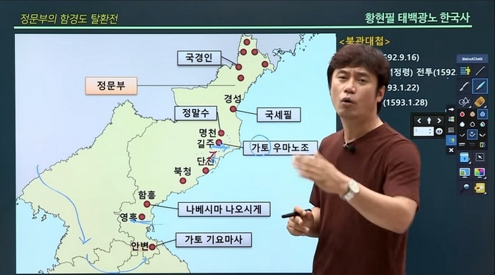 이러한 의미에서 허망하게 나라를 빼앗긴 역사를 제대로 공부해볼 필요를 느낀다. 이에, 나는 황현필 선생의 임진왜란 역사 강의를 소개하고자 한다. 물론 지금은 유튜브의 시대라서, 난다 긴다 하는 일타강사들의 현란한 역사강의들이 넘쳐나는 것도 사실이지만, 댜순한 역사적 사실과 진실의 기록이라는 차원을 넘어서서, 우리나라의 민족성과 지리적 특성을 제대로 인식하고 한민족의 역사적 가치를 계승하기 위해서 어떠한 자세로 과거를 마주해야하는지에 대하여 초점을 맞추고 싶다.