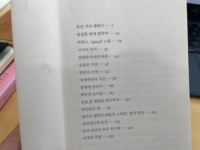 그녀는 연필을 사기 위해서 런던 거리를 헤맨다고 하지만, 실은 그 과정에서 만나는 사람들의 일상을 사고 싶었던 것일지도 모른다. 그녀는 시시콜콜하게 흘러가는 정상적이고 평범한 인생을 갈구했던 것일까. 이 책 속에 등장하는 에세이의 소재들은 하나같이 너무도 평범한 현상들이지만, 그녀가 그러한 것들에 집중하고 매몰될 수 있었던 것은, 그녀가 키우던 개, 그녀가 머물던 서재, 혹은 자잘한 병치레 같은 일상의 마찰들을 통해서 그녀 스스로 아직은 살아있음을 느끼고 싶었던 것은 아닌지 생각해 보게 된다.