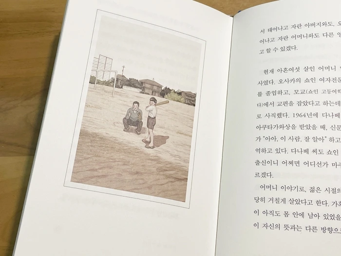 지워지지 않는 기억 자국이 노 작가의 가슴 한편에 남았다. 그는 어린 시절을 소중하게 간직해 온 사람이었으며, 거기에는 아버지에 대한 생각이 사라지지 않고 버티고 있다. 서로의 관계는 좋지 않았지만, 가족으로서 맺어지는 역사란 호감의 저편에 있는 것 같다. 그는 나직하게 어린 시절 아버지의 모습을 끄집어내었고, 읽는 이는 무라카미 하루키의 감각적 필치가 그의 나이와 함께 어느 정도 초연해진 거리를 느끼면서 접근할 수 있도록 다가갈 수 있다.