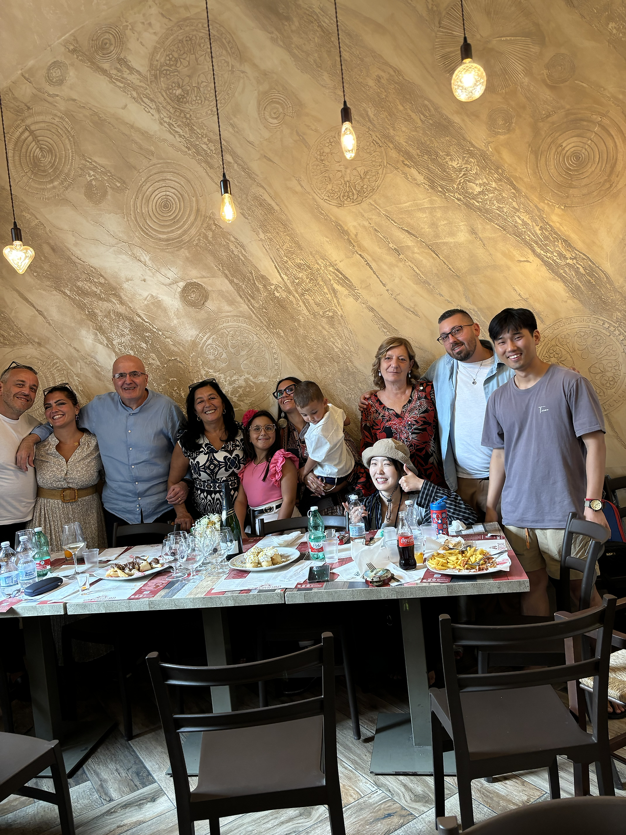 이탈리안처럼 각각 피자를 시켜서 먹지만, 여자친구에게만 하트 피자와 리코타 치즈를 덤으로 선물해 주었다. 참으로 재치 있고 낭만 있는 동네라는 생각이 들던 찰나 옆에서 생일 파티를 하고 있던 가족이 우리를 초대해 함께 간단한 얘기를 하며 사진을 찍었다.