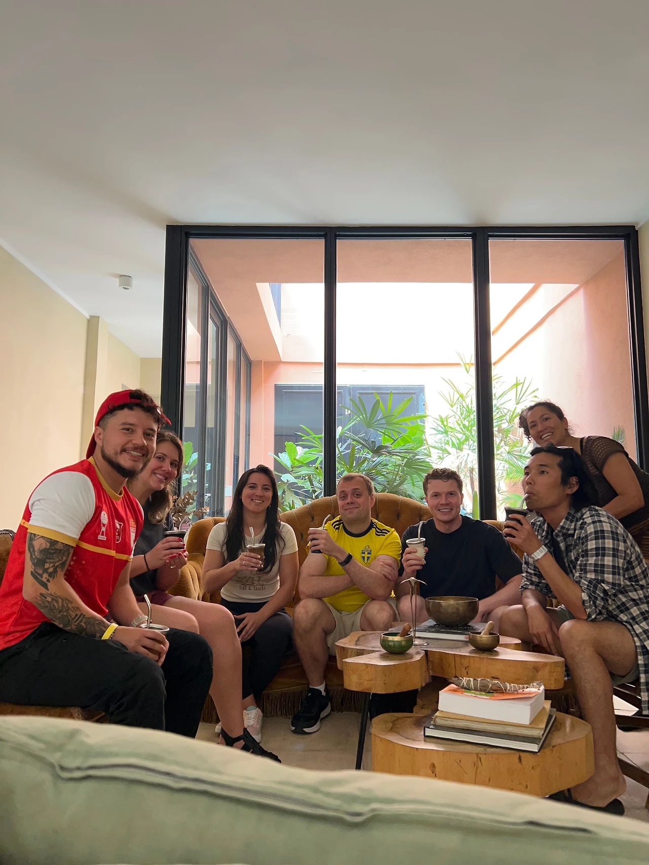 이렇게 준비된 차를 살바도르가 한 명 한 명 물을 따라서 전달한다. 컵을 건네받은 사람은 마시고 다시 살바도르에게 컵을 돌려주고, 살바도르는 다음 사람에게 컵을 전달한다. 여기서 중요한 것은 나에게 주어진 잔은 모두 내가 마신다는 것이다. 컵은 공유하지만 물은 공유하지 않기에 호로로록 소리가 날 때까지 빨아 마셔야 한다고 한다. 여기서 재미있는 점은 오직 살바도르만이 물을 따라 전달할 수 있는 권한이 주어진다. 그러기에 그룹의 마시는 속도와 물의 분배를 모두 살바도르가 담당한다.