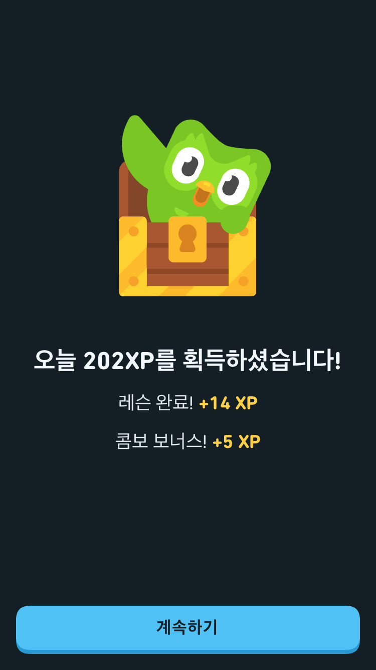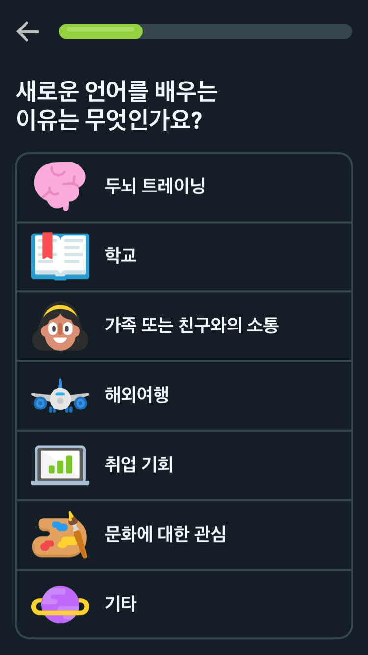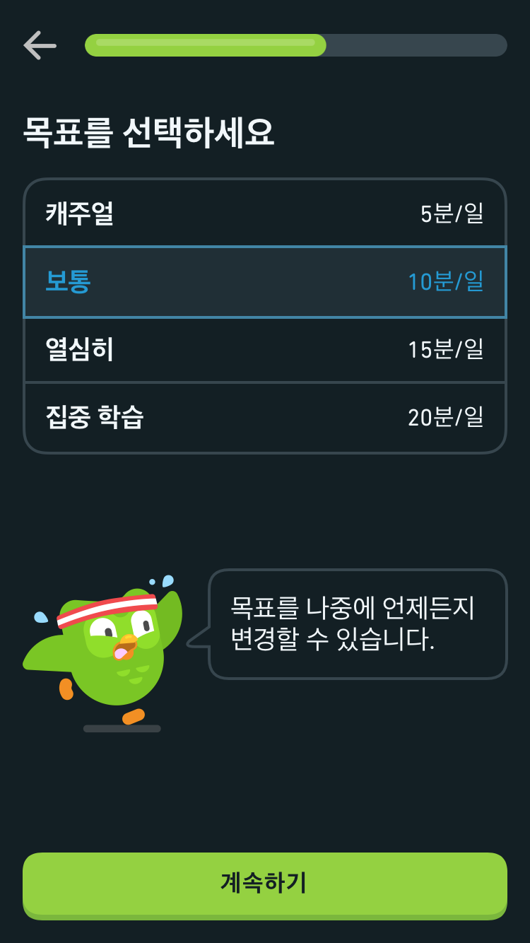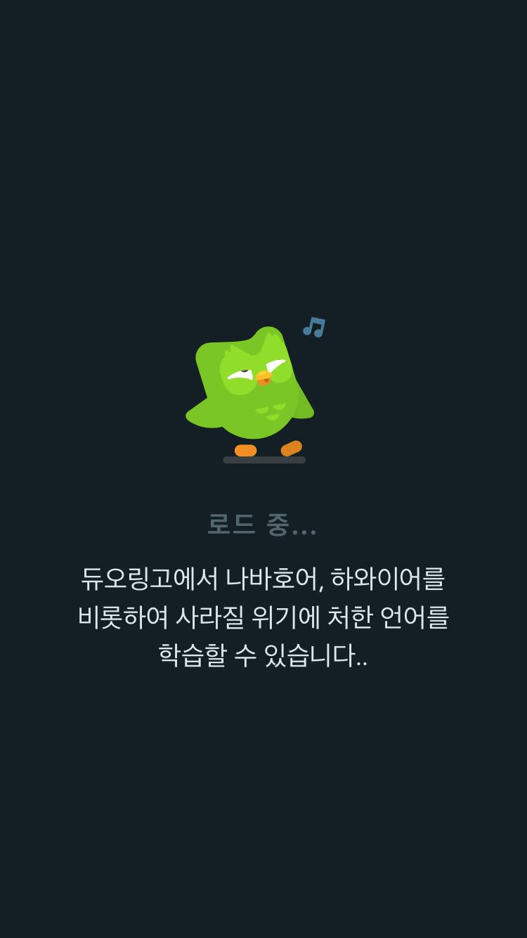교육 프로덕트는 게임 프로덕트와 달리 중간에 탈주...하는 유저가 많을 수밖에 없다. 그래서 듀오링고 역시 사용자가 도중에 그만두지 않도록 도허티 임계를 활용하고 있는데, 제일 잘한다고 생각한 부분은 두 가지가 있다. 1) 교육 콘텐츠를 시작할 때 로딩 화면과 2) 수업 진도 표시 부분이다.
