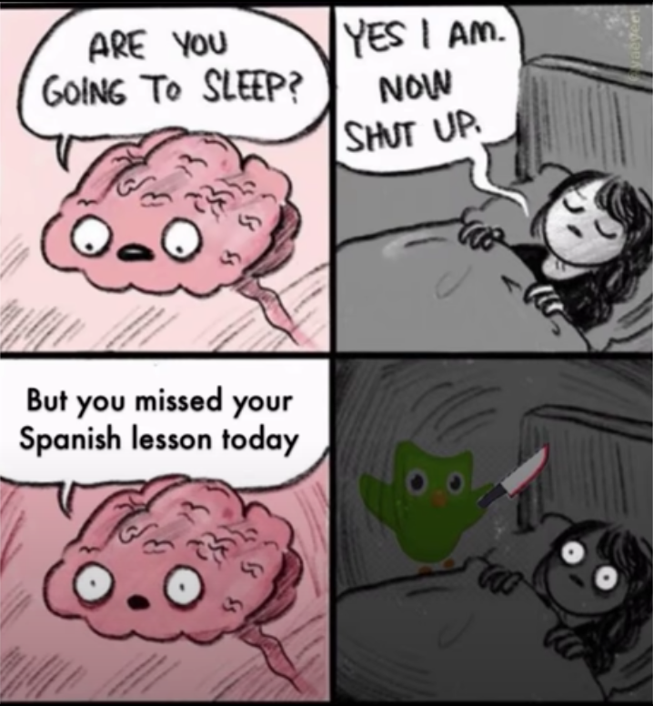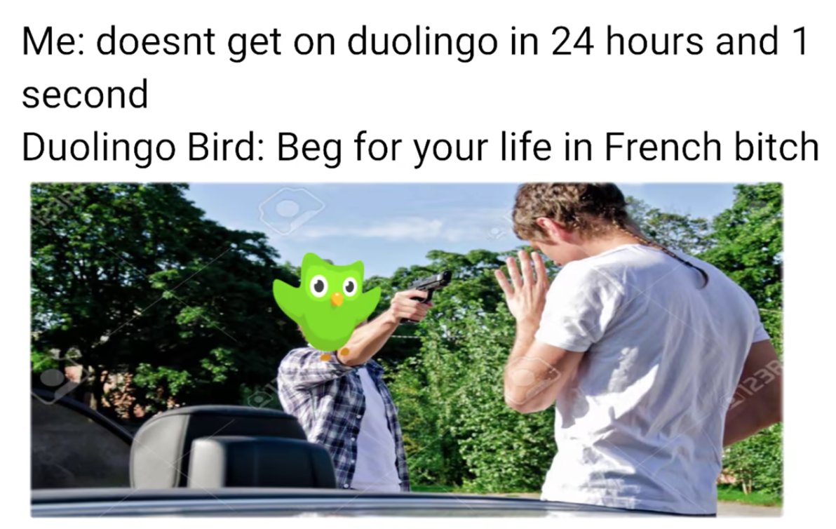 언어 공부 좀 해봤다! 싶은 사람이라면 누구나 알만한 어플을 이번에 가져와봤다. 그 이름도 유명한 듀오링고(DuoLingo). 사실 언어 공부 효과 자체보다는 밈으로 더 유명하기도 한 것 같은 이상한 느낌이 들기도 하는데, 실제로 듀오링고를 검색하면 아래와 같은 밈이 수 천 개쯤 쏟아져 나오기 때문... 웃기니까 차분히 감상해보자.