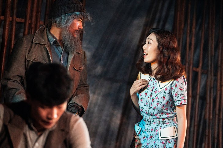 인간도 생쥐와 마찬가지로 ‘구조’라는 우리 속에서 갇혀 있음을 보여주기 위해 무대 세트는 햄스터 케이지처럼 만들었다. 일반적인 무대의 바닥과는 달리 단단하지 않은, 원두로 깔린 바닥(2019년에는 팥으로 수정되었다)은 인물의 동선을 자연스럽게 만드는 동시에, 똑바로 걸을 수 없게 한다. 추가된 자체 OST 10여 곡도, 시간에 따라 색이 변하는 구름과 하늘, 밤이 될 때마다 빛나는 별빛도 인물들의 운명과 상관없이 아름답기만 하지만, 그 아래에서 인물은 삐뚤삐뚤 걸으며 어떻게든 헤쳐나가 보려 안간힘을 쓴다. 2019년 재연의 민준호 연출은, 여기에 더해 원작에서는 헤픈 여성으로만 묘사되는 컬리 부인과, 2018년 극에서는 빠졌던 흑인이자 장애인인 크룩스의 서사가 추가했다. 약자인 두 인물의 이야기를 더해 강자가 약자를 잡아먹는 잔혹함을 보여주기 위해서다. (https://www.nocutnews.co.kr/news/5221664)