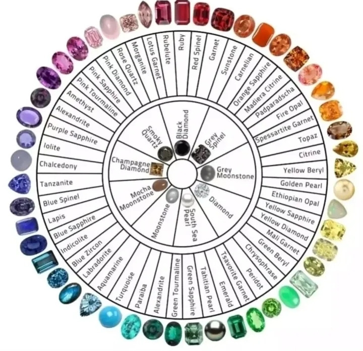 버마 모곡루비, 피존 블러드 루비 (일반 루비보다 10배쯤 비싸다) 파파라차(연꽃, 혹은 새벽빛 노을색) 사파이어, 로열블루 사파이어, 카슈미르 블루 사파이어, (컨플라워나 일반 청색에 비해 네댓 배쯤 비싸다) 인디콜라이트-라군 투어멀린, 루벨라이트-루비색 투어멀린, 파라이바 투어멀린, 산타마리아 아콰마린, 제다이-루비색 스피넬, 슬리핑뷰티 터키석 등등...
